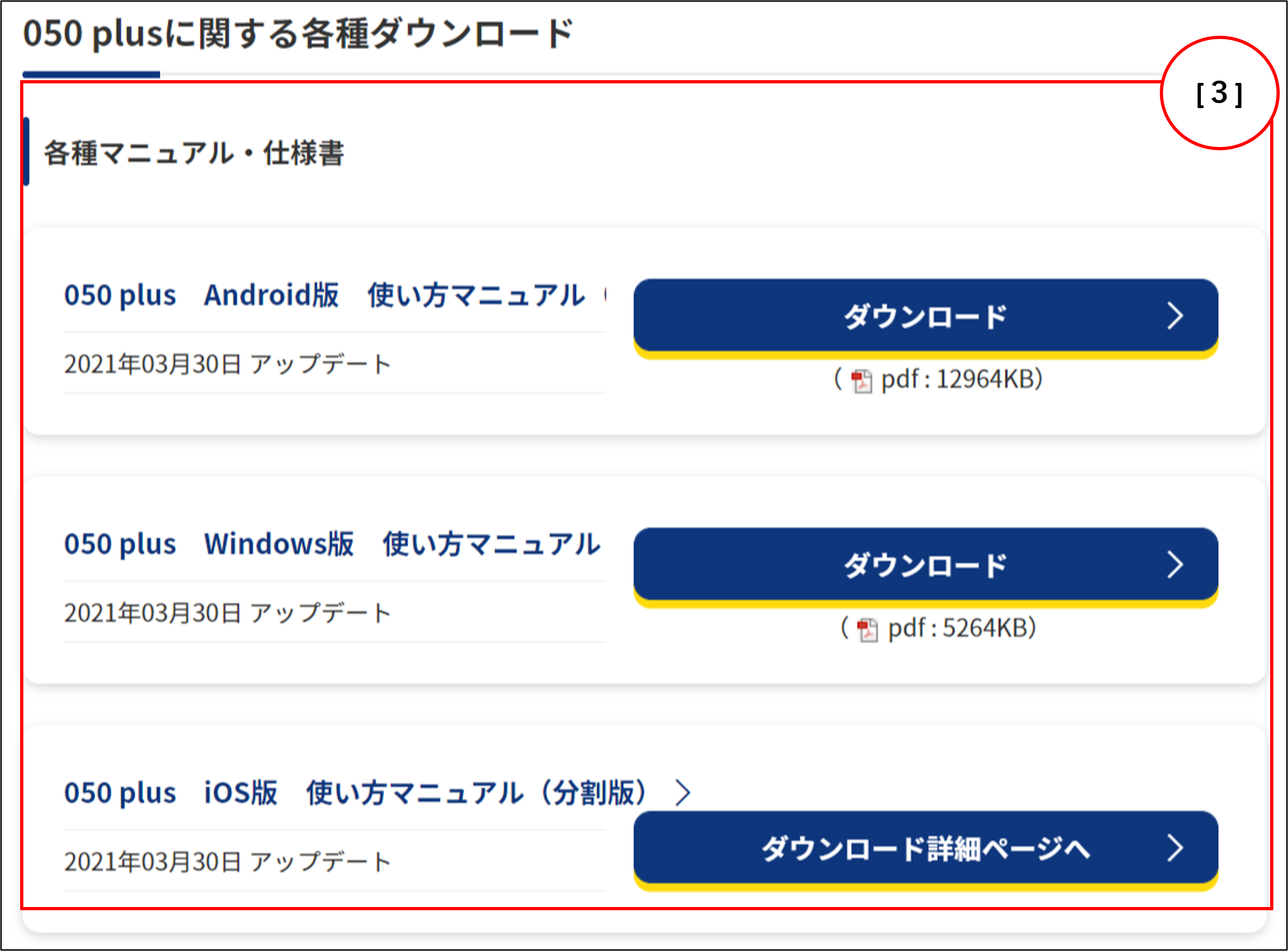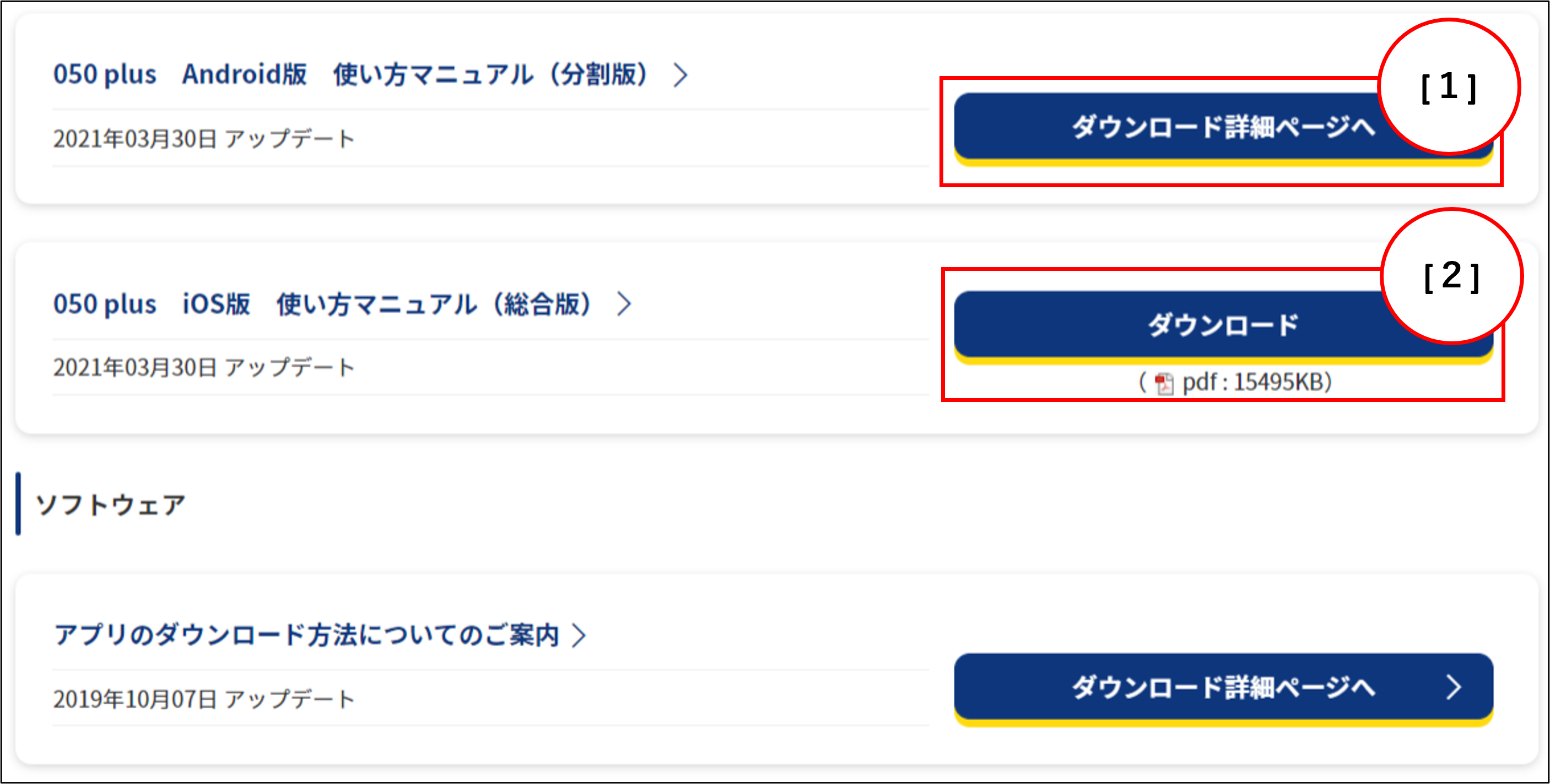 - 各種ダウンロード画面から「ダウンロード詳細ページへ」をクリックすると遷移先ページに複数のコンテンツが表示されます。必要なコンテンツをご確認の上ダウンロードしてご利用ください。