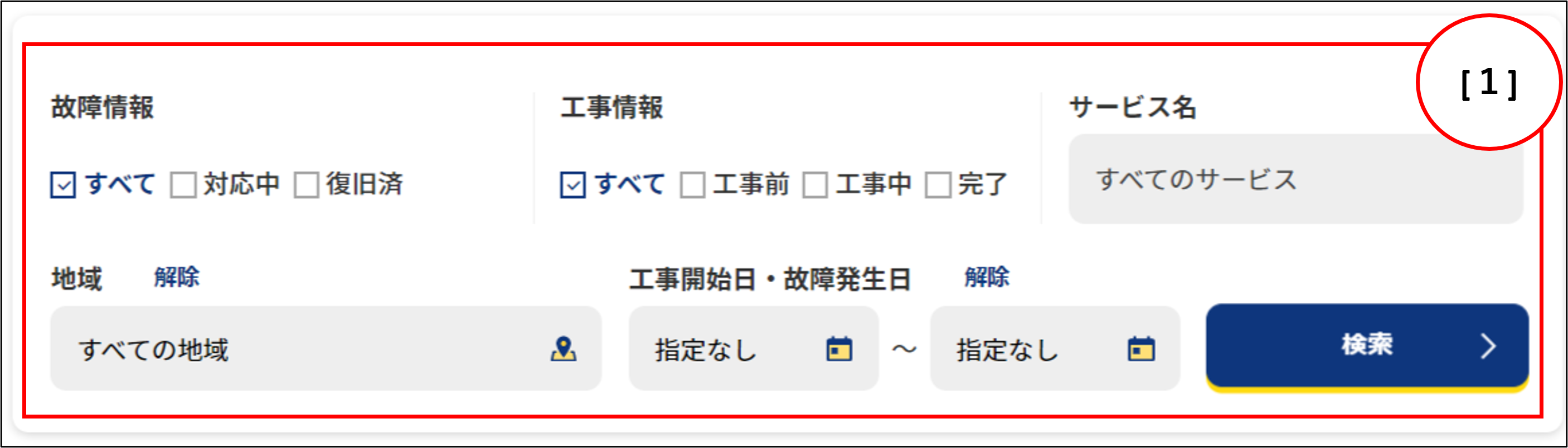 - 工事状況や故障状況、日時を指定した検索ができます。