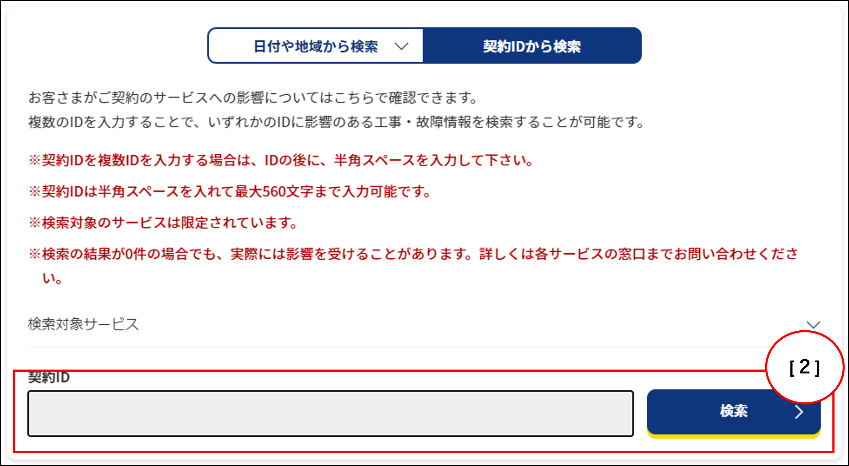 - 「契約IDから検索」タブを選択して契約ID検索欄を表示します。