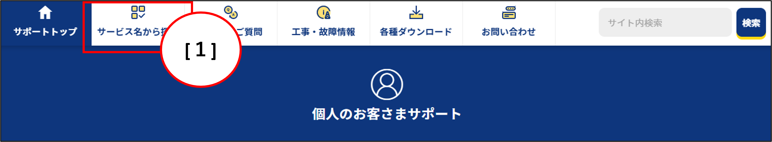 - お客さまサポート画面からサービス名から探すをクリックする。