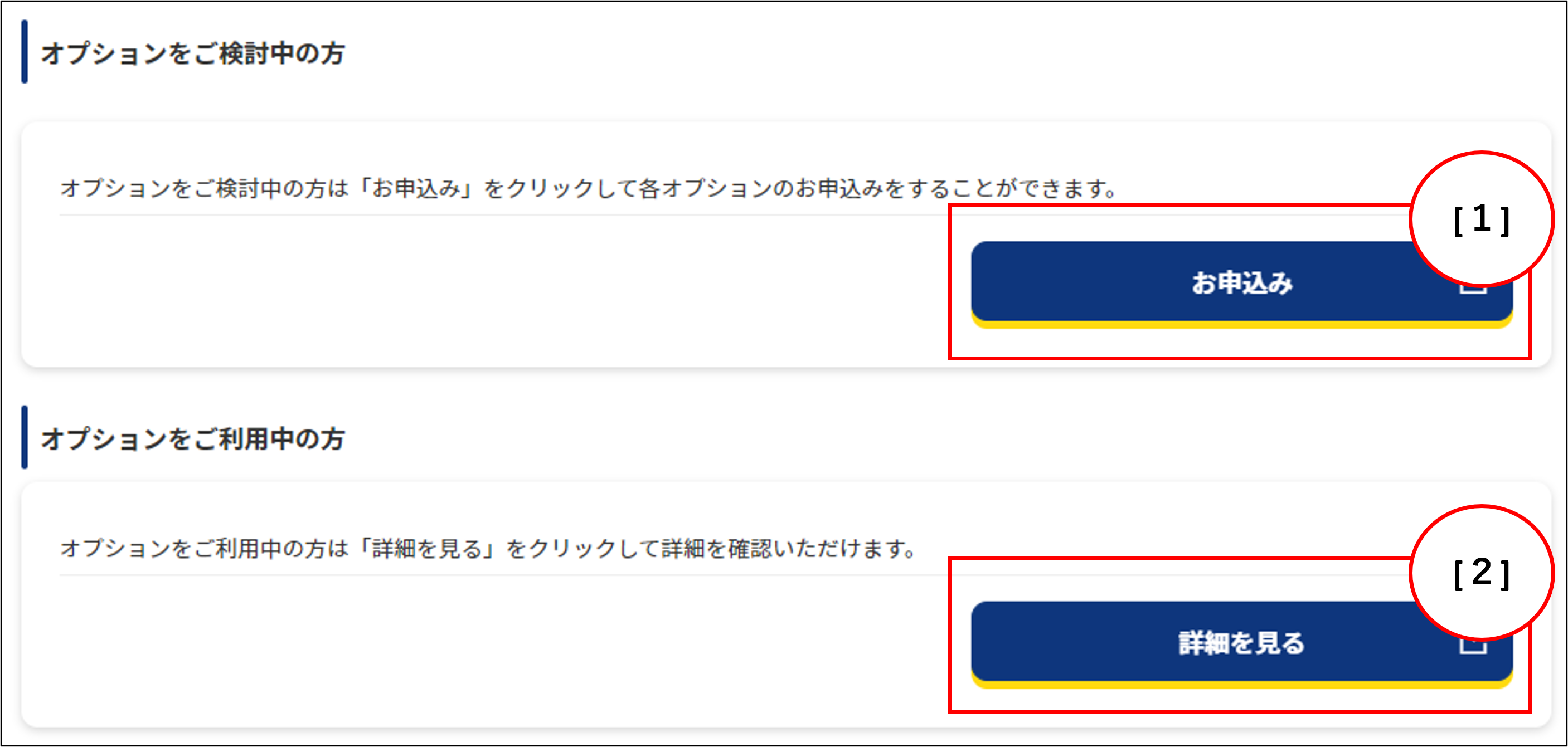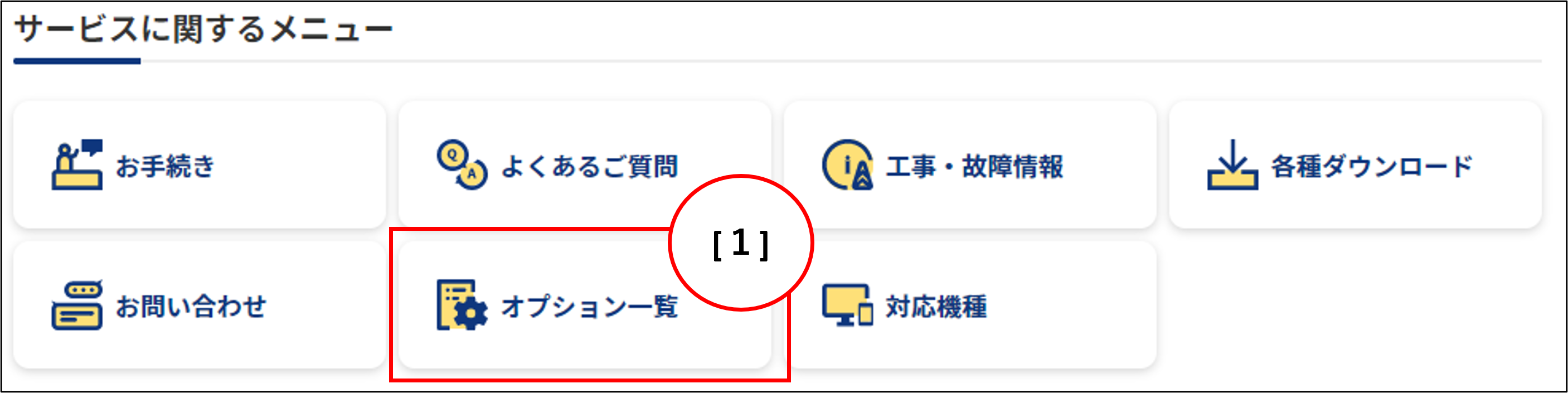 - サービストップにあるサービスに関するメニューから「オプション一覧」をクリックする。