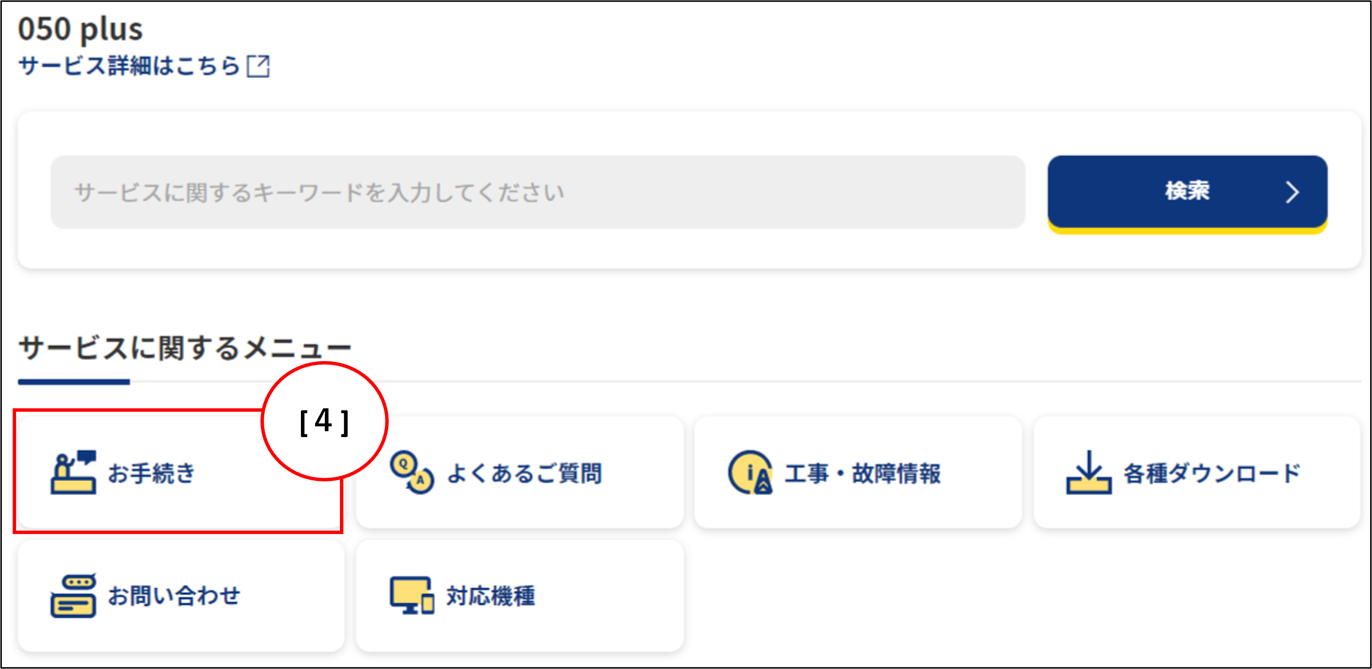 - サービストップにあるサービスに関するメニューから「お手続き」をクリックする。