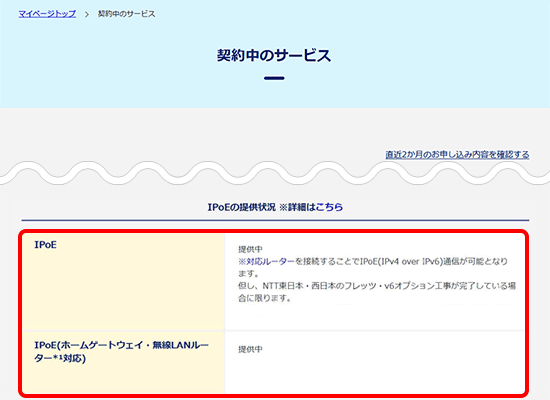 [IPoE]欄が[未提供]であっても、インターネットのご利用は可能です。