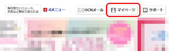 以下のリンクからOCNトップページを表示し、[マイページ]をクリックします。