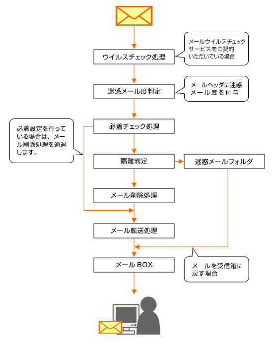 OCNメールのオプションサービスや詳細設定は、以下の順序で処理されます。