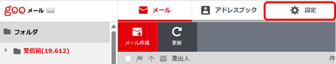 1.Webメールへログインして[設定]をクリックします