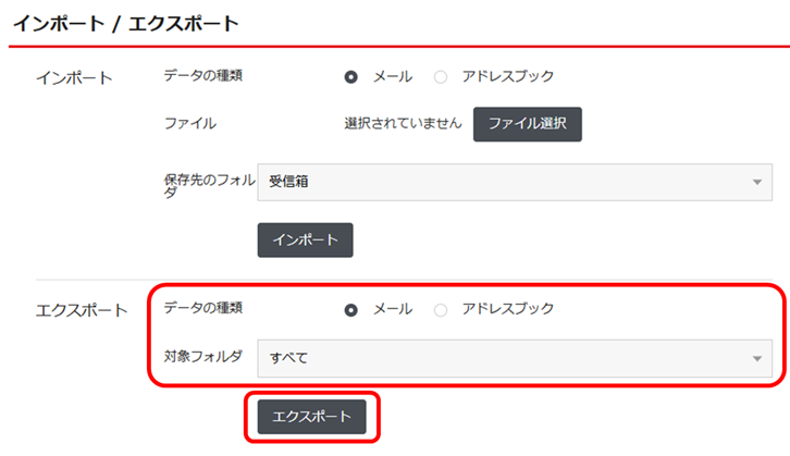 <メールデータのエクスポートについて>