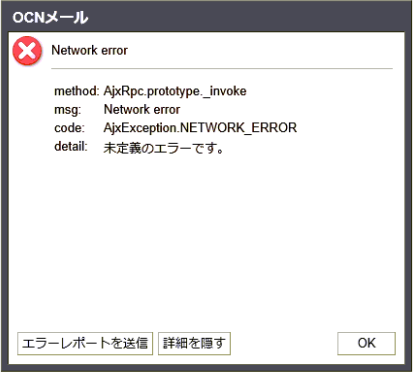 Windows 10をご利用のお客さまが、2017年4月のWindowsアップデート(Windows 10 Creators Update)を行った場合、Internet ExplorerでOCNメール(アドバンストバージョン)を利用時にネットワークエラーが表示される事象が確認されておりましたが、最新のWindows10更新プログラムを適用することにより事象が解消することを確認しております。