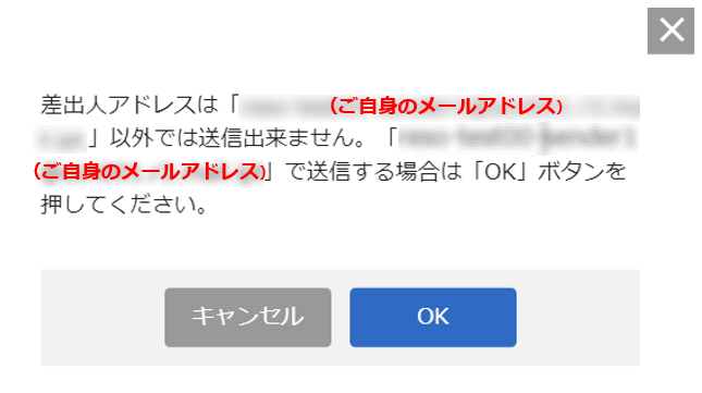 既にOCNメールアドレス以外が登録されている場合メール送信時に警告メッセージが表示されます。
