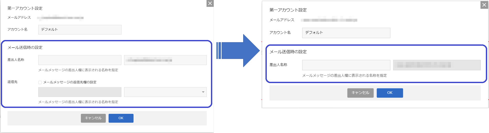 ・返信先メールアドレス」の変更、および、メール作成時の「差出人メールアドレス」の変更。