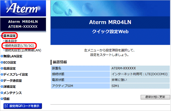 ブラウザのアドレスバーに http://aterm.me/ と入力して[Enter]または[Return]キーを押し、[クイック設定Web]を起動します。