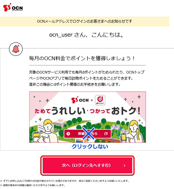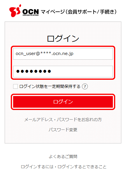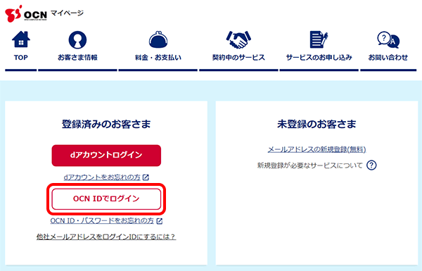 OCN マイページからログインする場合