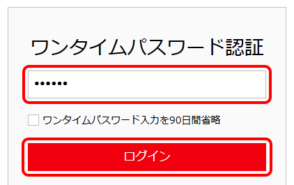 OCNよりメールで通知するワンタイムパスワード(数字6桁)を入力し、[ログイン]をクリックします。