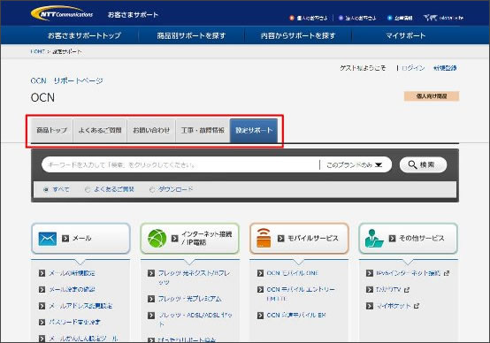 http://support.ntt.com/ocn/support