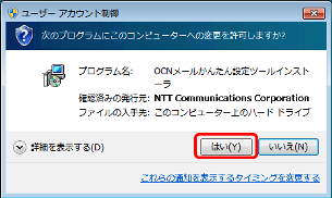 ※バージョンアップ時にWindows「アカウント制御」画面が表示されますので、発行元が「NTT Communications」になっていることを確認してから「はい」を選択して更新(インストール)を進めてください。