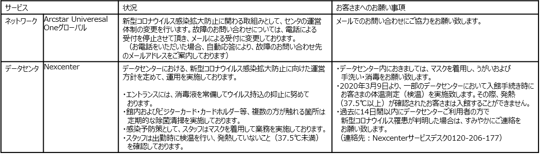 新型コロナウイルス(COVID-19)に関するサービスへの影響について